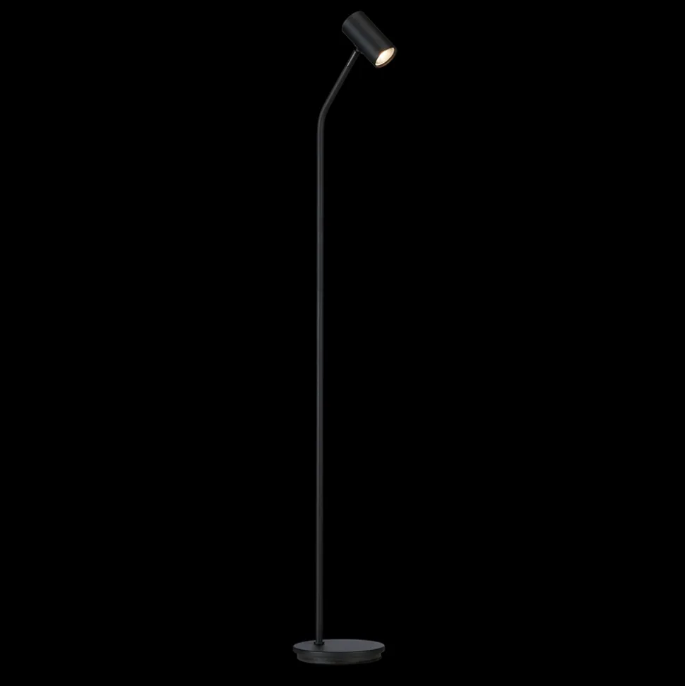 Tyson golvlampa är en elegant lampa med ett böjt rör i metall, finns i två färger. Denna modell har en höjd på 126,5 cm och en skärmdiameter på 17,8 cm.