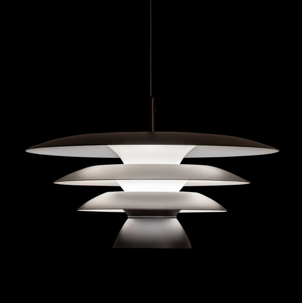 DaVinci pendel är en elegant taklampa tillverkad av metall. Pendeln består av tre skärmar i olika storlekar som tillsammans ger ett modernt uttryck. DaVinci pendel passar lika bra i vardagsrummet som i köket. Da Vinci taklampa från Belid är designad av Joakim Fihn och är en uttrycksfull taklampa producerad i metall med vackra detaljer. Den specialdesignade skärmen ger ett unikt avbländat ljusflöde som sprider ett vackert och behagligt ljussken. Passar i vardagsrum eller kök.