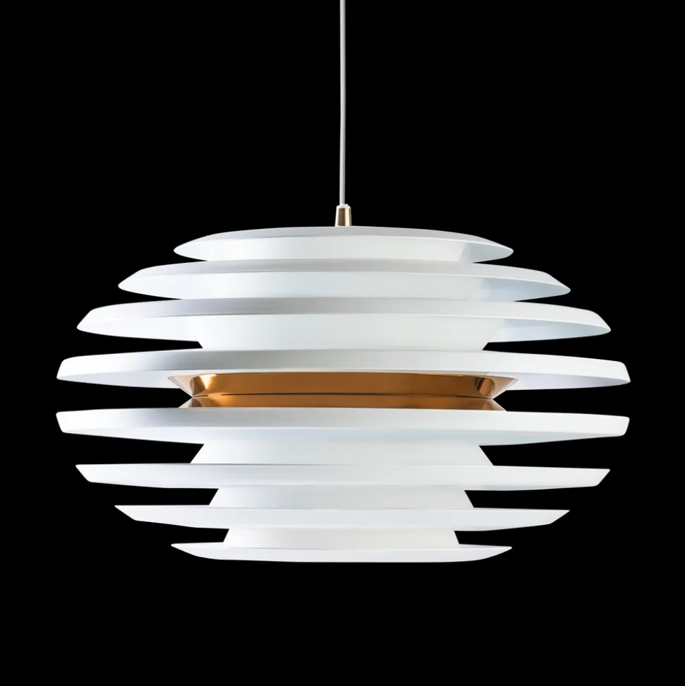 Ellipse pendel är en ellipsformad taklampa som kombinerar modern design med en funktion som ger ett vackert, intressant och nästan svävande ljus i det rum där den hänger. Designen på lampan skapar ett fascinerande ljusflöde, och skärmarnas speciella konstruktion ger en vacker ljusbild i rummet där den hänger. Den mattvita färgen, i kombination med detaljer, bidrar till dess stilrena utseende och känsla av att nästan sväva i rummet. Ellipse pendeln finns i flera olika storlekar. Diameter på 50 cm och en höjd på 28,2 cm. Skärmen är tillverkad i metall. Vit sladd, längd 3m och E27 sockel, ljuskälla ingår ej. Design av Joakim Fihn.