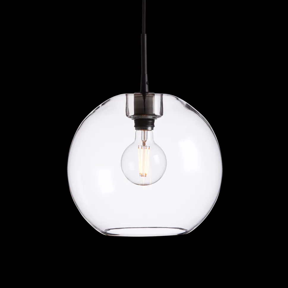 Glaskupan är tillverkade av munblåst glas, vilket innebär att varje lampa har sin egen unika finish, och små luftbubblor kan förekomma som en del av lampans karaktär. Gloria är designad för eleganta filamentglödlampor, och ljuset presenteras på ett vackert och dekorativt sätt. Ljuskälla ingår ej. Armaturen har en diameter på 32 cm och en höjd på 29 cm, E27 sockel, och är dimbar. Kabellängden är 2,8 m. .