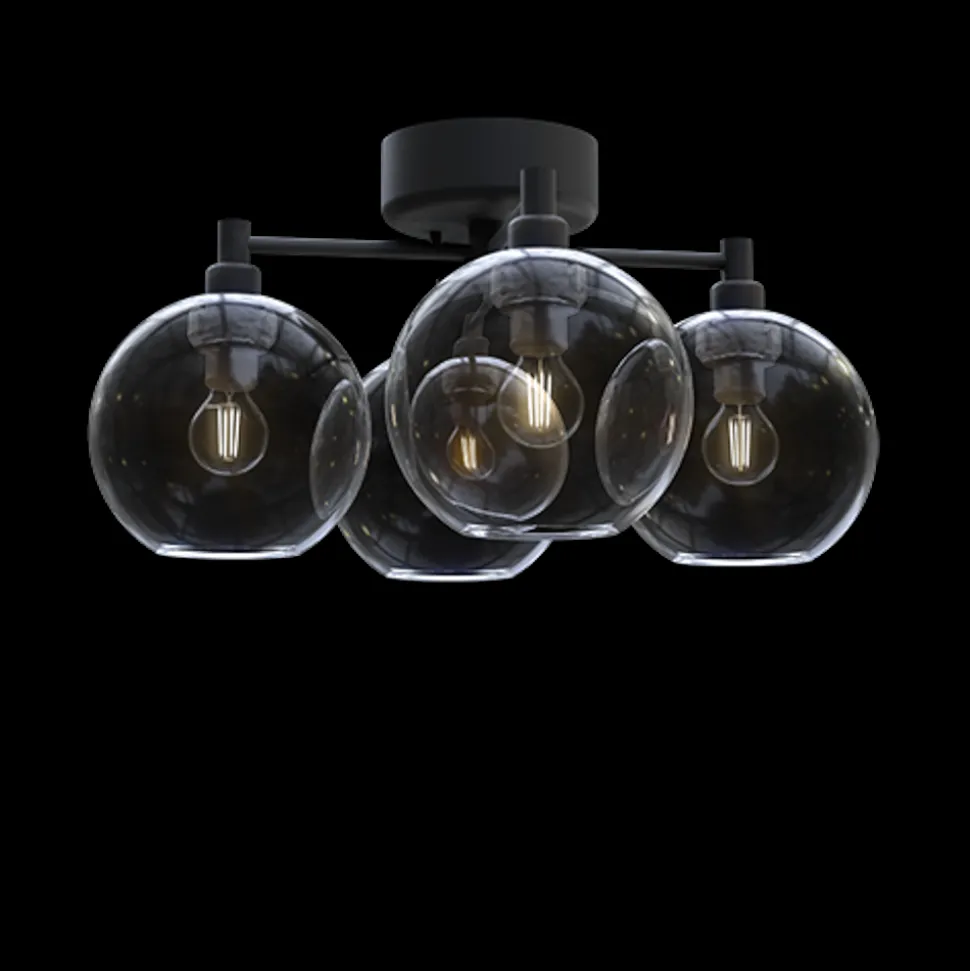 Gloria Plafond är enkel och stilren taklampa med fyra runda lampskärmar i munblåst glas. Den sprider ett mjukt och vackert ljus i rummet och är särskilt designad för att använda vackra filamentglödlampor. Denna plafond passar i de flesta rum och är särskilt lämplig för ditt sovrum. Den är dimbar för att skapa den perfekta atmosfären, och den är enkel att montera med krokupphäng. Observera att ljuskällor inte ingår.