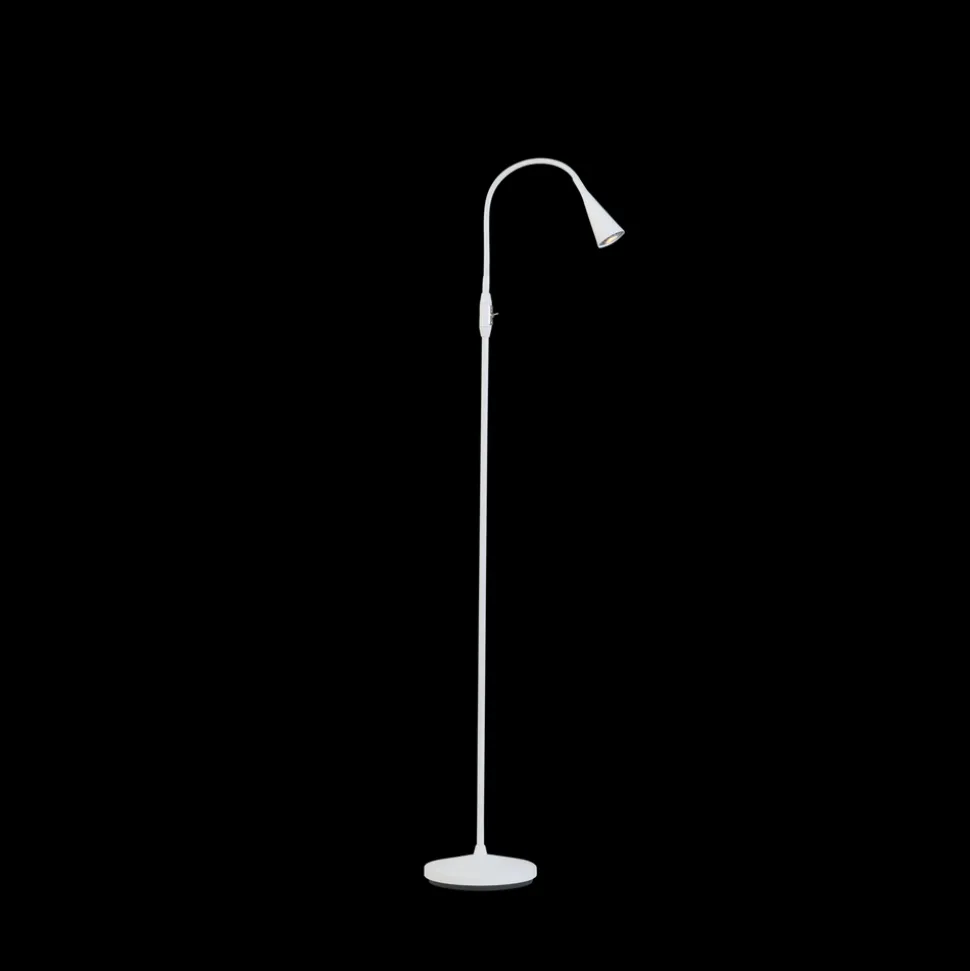 Ledro golvlampa finns i två färger, matt svart eller matt vit. En stilren golvlampa som passar fint i anslutning till en soffa eller fotölj. Golvlampans böjda form gör att den passar utmärkt som läslampa med en höjd på 121,6 cm. Svart sladd och en GU5,3 sockel